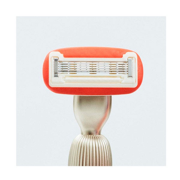 Umedeça a cabeça da lâmina de barbear em água para ativar o anel lubrificante e passe-a sobre a área interessada para proceder à depilação.