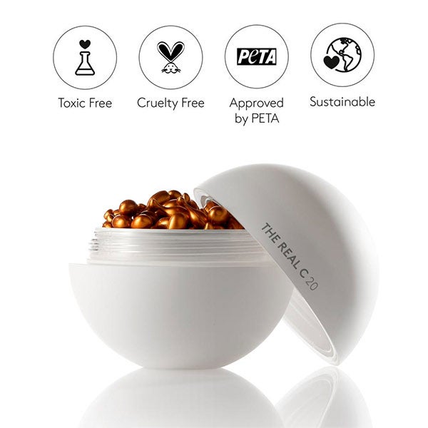 THE REAL C é um tratamento antienvelhecimento 30 dias de Vitamina C pura a 20% para dar luminosidade e elasticidade à pele, reduzir rugas e manchas. Este super-cosmético é mais potente que os derivados da vitamina C. Sua formulação com Vitamina E e Ácido Ascórbico melhora a síntese de colágeno. Este complexo antioxidante atua como escudo contra os radicais livres: protegendo do dano celular, trabalhando as rugas e a firmeza do contorno facial, maximizando a renovação celular e reduzindo visivelmente as manchas.