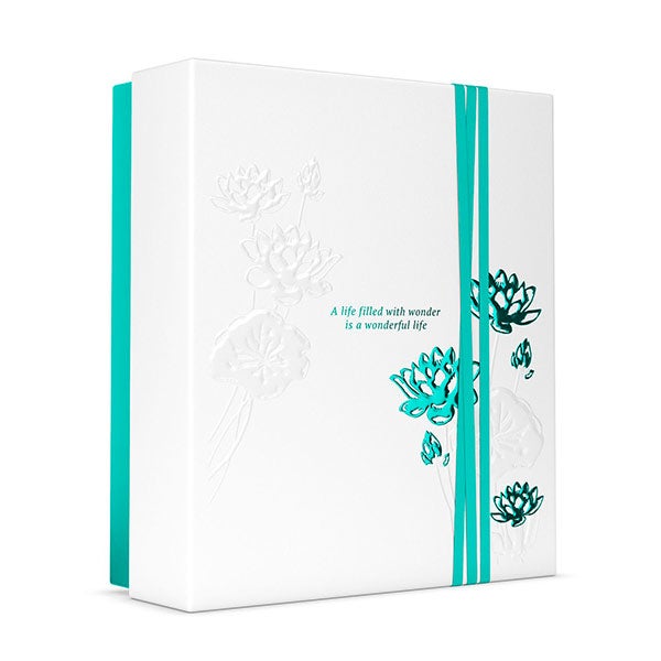 Este magnífico baú de presente é o detalhe perfeito para um amigo, um familiar ou para se mimar. Desfrute da sensação do verão o ano todo com estes produtos calmantes baseados no aroma floral da flor de lótus e do chá branco.