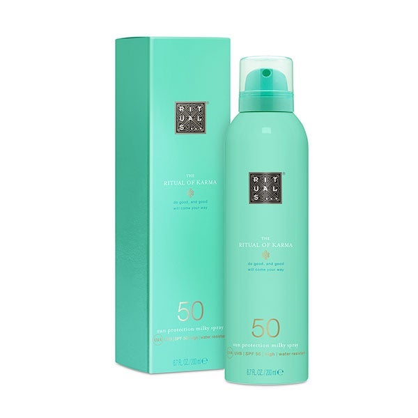 Desfrute do sol sem preocupações graças a este leite em spray SPF50 de The Ritual of Karma.