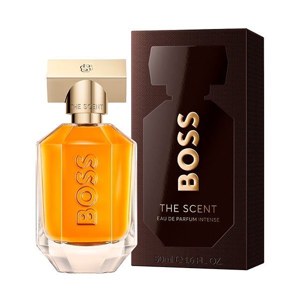 BOSS The Scent Eau de Parfum Intense para Mulher reinventa a sensualidade empoderadora em um frasco chamativo, adornado com um logotipo BOSS de grande tamanho e coroado com uma tampa de ouro quente com monograma do Duplo B. Através da silhueta multifacetada, o líquido dourado-âmbar brilha como néctar fundido e encarna a feroz fusão de um casal poderoso em perfeita harmonia.