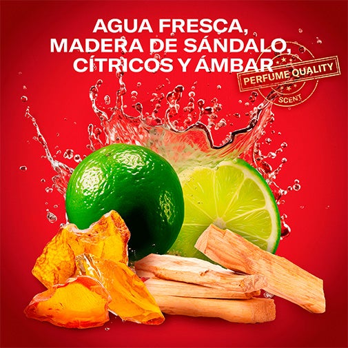 Aqua, lauril sulfato de sodio, cocamidopropil betaína, cloruro de sodio, perfume, alcohol bencílico, benzoato de sodio, citrato de sodio, xilensulfonato de sodio,limoneno, salicilato de sodio, ácido cítrico, linalool, EDTA disódico, citronelol, hidróxido de sodio, CI 19140, CI 17200