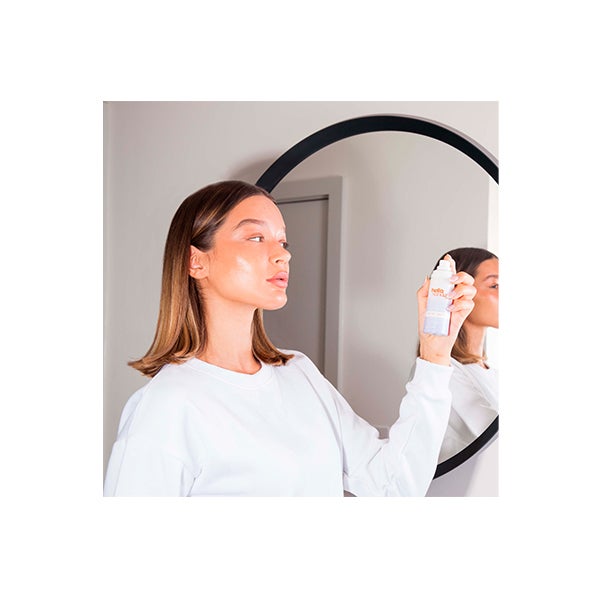 Produto com um acabamento perfeito para usar como último passo da rotina de cuidado da pele e sobre a maquiagem, sem deixar resíduo branco.