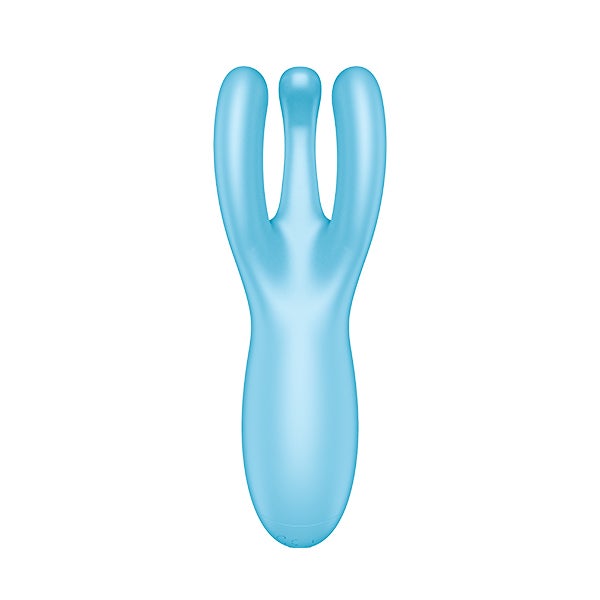 O vibrador de colocação Threesome 3 proporciona uma estimulação sensual do clitóris e dos lábios vaginais em uma ampla área: com seus 3 braços arredondados, cada um dos quais abriga um potente motor, tem uma forma ergonômica. Os dois braços exteriores mimam os lábios enquanto que o braço central repousa centrado sobre o clitóris e pode ser empurrado para baixo para intensificar a estimulação.