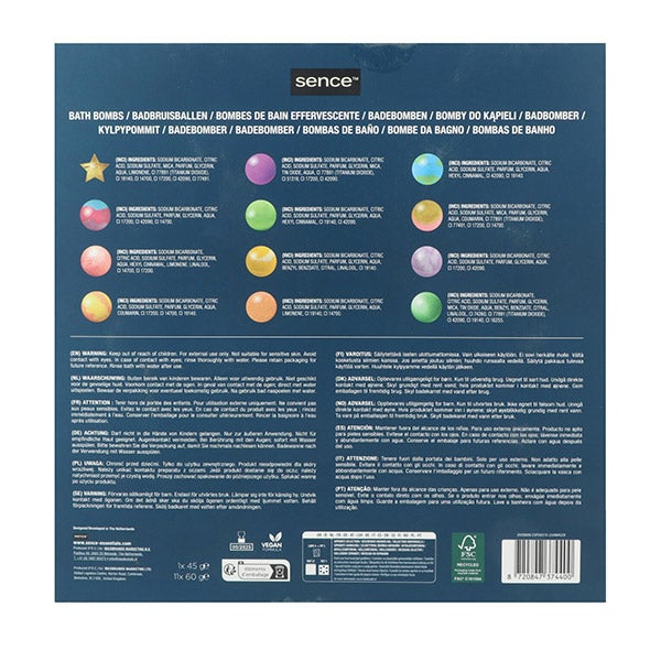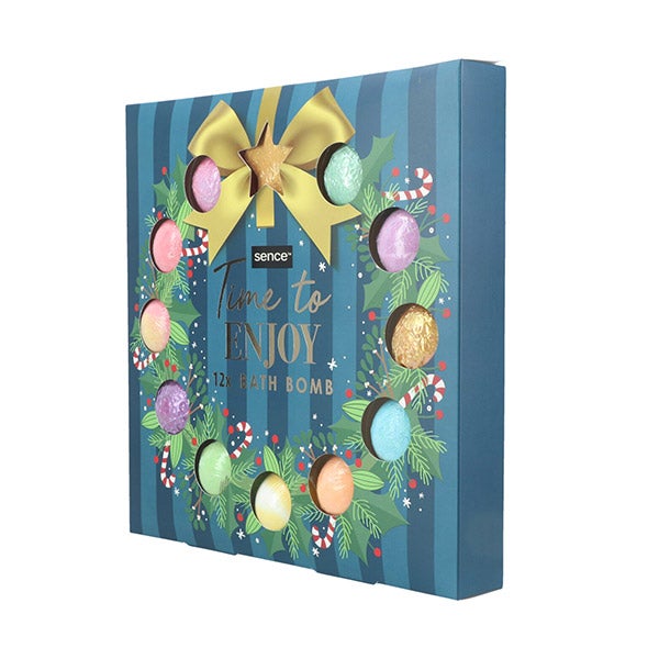Dentro do conjunto de presente Sence Warm Wishes Bath Bomb, você encontrará doze alegres bombas de banho com cores explosivas e aromas quentes para desfrutar.
