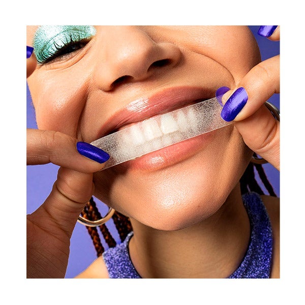 2) Coloque as tiras nos seus dentes superiores e inferiores. Deixe agir entre 30 e 45 minutos.