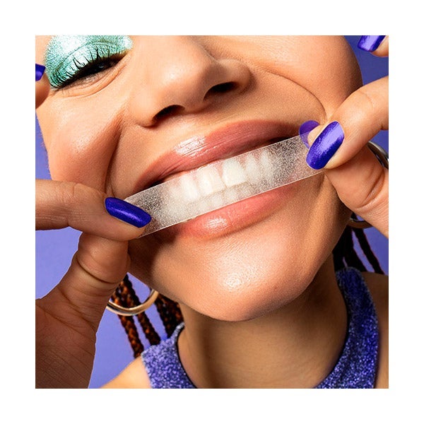 2) Coloque as tiras nos seus dentes superiores e inferiores. Deixe agir entre 30 e 45 minutos.