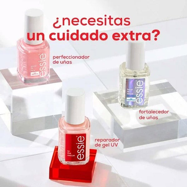 O tratamento reparador de unhas danificadas por gel UV essie to the rescue tem um acabamento transparente, neutro e brilhante para um look de manicure natural que você vai adorar.
