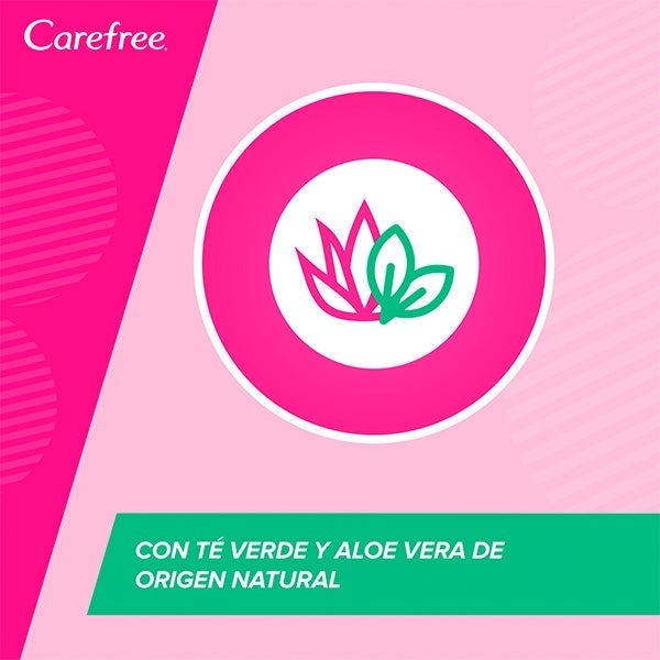 As toalhas íntimas duplo efeito da Carefree, com chá verde e aloe vera de origem natural, proporcionam-lhe instantaneamente a sensação de frescor e cuidado íntimo quando você precisa.