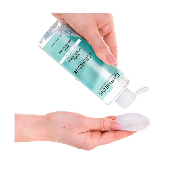 NORMACNE Tônico limpador e regulador da pele está especialmente formulado para peles oleosas que necessitam de uma ajuda integral diária.