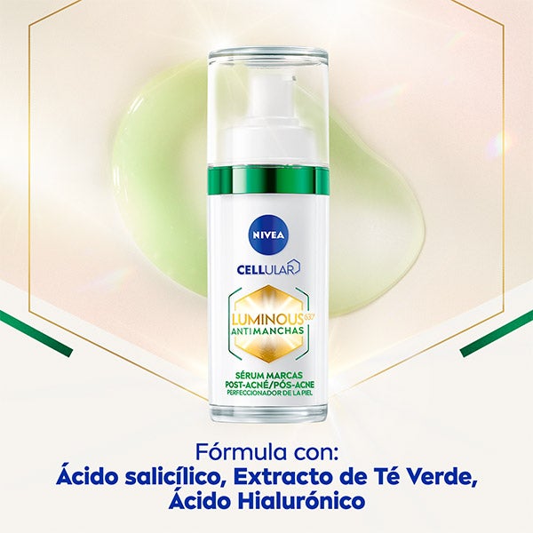 NIVEA Cellular LUMINOUS630® Sérum Anti Marcas Pós-Acné: Este sérum leve em textura de gel exerce uma tripla ação na zona pós-acne: