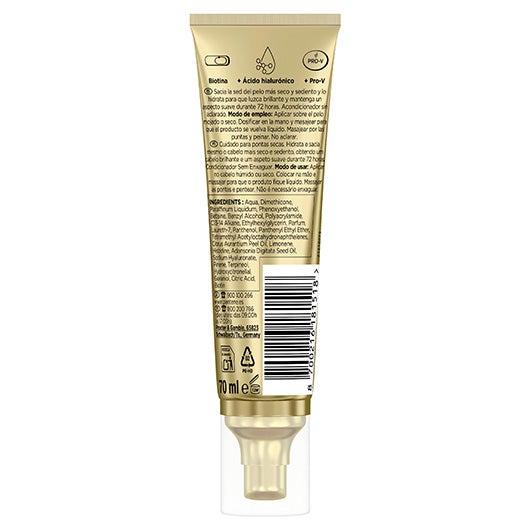 Utilize este condicionador sem necessidade de enxágue nas pontas para alcançar um cabelo suave e luminoso que dura por 72 horas.