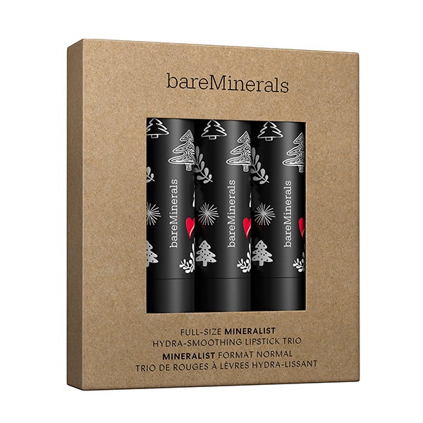 Trio de batons veganos em três tons inspirados nas festas. Feito com apenas 19 ingredientes limpos, proporcionam uma grande cobertura, hidratação e cor. Cada um vem em um estojo especial feito com alumínio reciclado pós-consumo e com um design festivo.