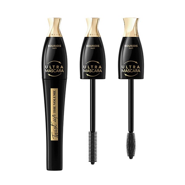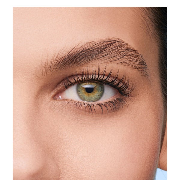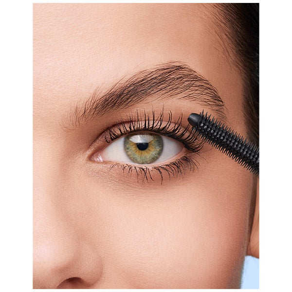 Máscara de cílios com uma escova com duas posições que faz os cílios ficarem mais longos e volumosos.