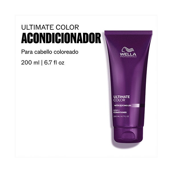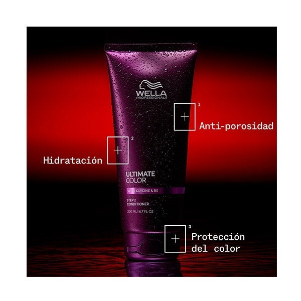 Após lavar o cabelo com o Shampoo Ultimate Color da Wella Professionals, aplicar sobre o cabelo limpo e úmido, do meio às pontas. Deixar agir entre 30 segundos a 3 minutos antes de enxaguar com bastante água.