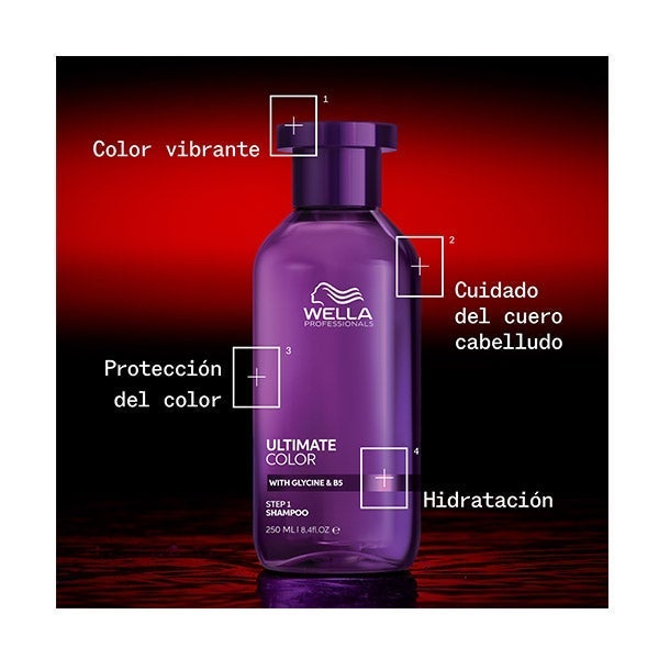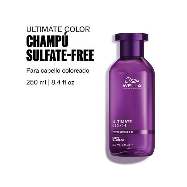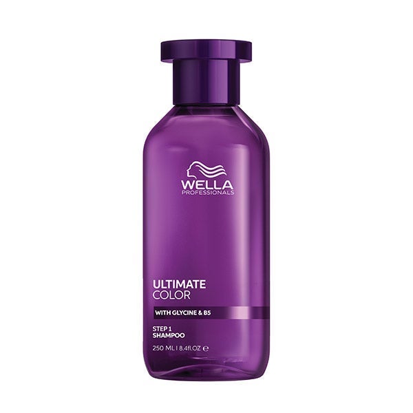 Limpa e acalma o couro cabeludo e cabelo com o Shampoo Ultimate Color de Wella Professionals, um shampoo calmante que ajuda a minimizar o desbotamento da cor*, enquanto desintoxica o cabelo de metais que alteram a cor. Enriquecido com glicina e formulado com tecnologia Metal Purifier para ajudar a proteger o cabelo dos danos causados pelos radicais livres, e B5 para selar a hidratação desde o couro cabeludo até as pontas.