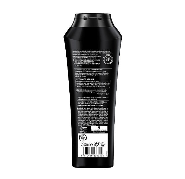 Ultimate repair: Este shampoo para cabelos danificados preenche com precisão as queratinas perdidas e repara intensamente a estrutura capilar, ajudando a combater a estrutura enfraquecida do cabelo.