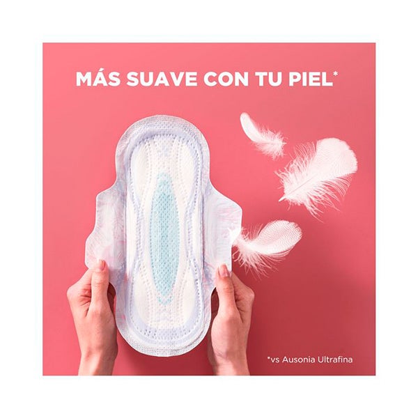 Os absorventes Ausonia Ultrafina Plus para o período absorvem melhor vs Ausonia Ultrafina e são suaves com a pele, ao mesmo tempo que neutralizam os odores.