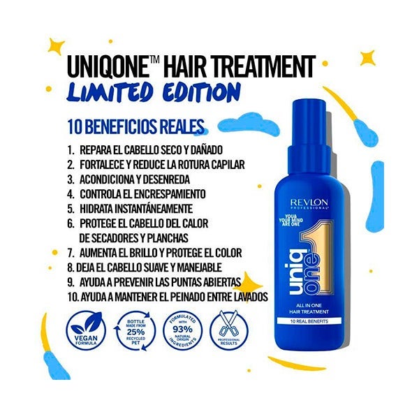 UNIQONE™ TRATAMENTO CAPILAR EDIÇÃO LIMITADA 150 Ml TRATAMENTO SEM ENXÁGUE O tratamento multi benefícios capilar vegano sem enxágue que revolucionou o mercado dos salões de beleza de todo o mundo e que oferece 10 benefícios em um único produto.