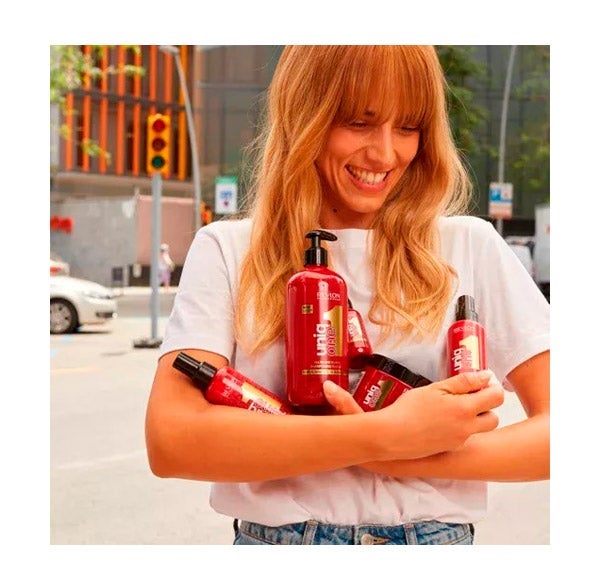 Esta máscara oferece os 10 benefícios que seu cabelo precisa em 1 só produto. Repara o cabelo seco e danificado, brilho e controle do frizz, proteção térmica, suavidade e sedosidade, proteção da cor com filtros UVA e UVB, facilita o penteado, efeito desembaraçante, nutre profundamente, previne as pontas duplas e aporta corpo e volume.