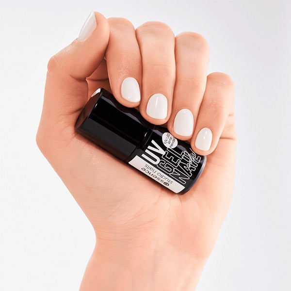 5. Aplique uma camada do esmalte UV GEL NAIL da essence e repita o passo 4. Repita o processo com uma segunda camada.