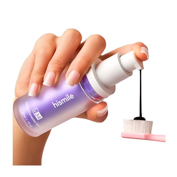 O sérum clareador V34 da Hismile é projetado para funcionar exatamente como um corretor de cor, mas para os dentes. Graças à tecnologia de correção de cor, disfarça os tons amarelados dos dentes para melhorar e realçar a luminosidade do seu sorriso.
