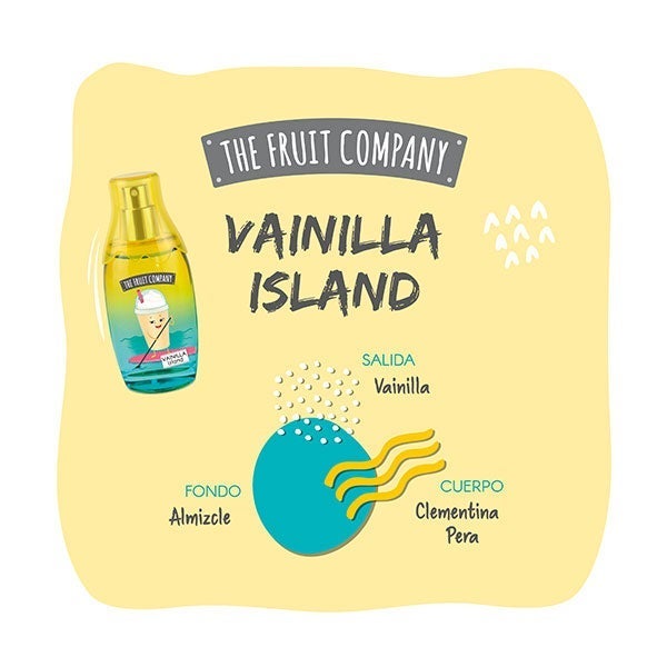 Desprende uma trilha de baunilha e frutal com a nova Eau de Toilette Vainilla Island The Fruit Company e sua irresistível e exótica fragrância de Baunilha com a qual perfumar sua pele da manhã à noite.