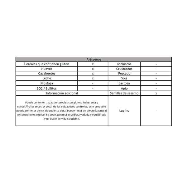 Puede contener trazas de cereales con gluten, leche, soja y nueces/frutos secos.