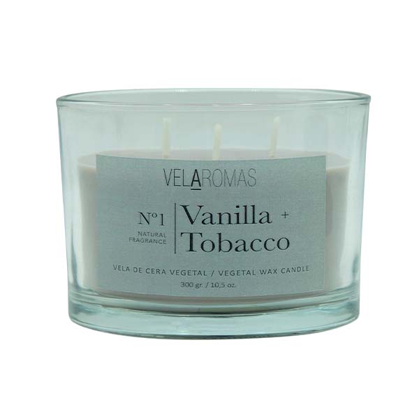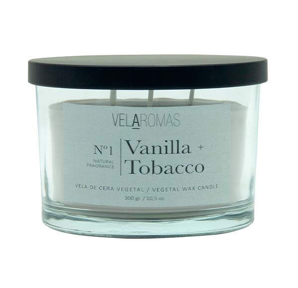 Vela 3 Pavios com tampa de cera vegetal com fragrância de VANILLA TOBACCO