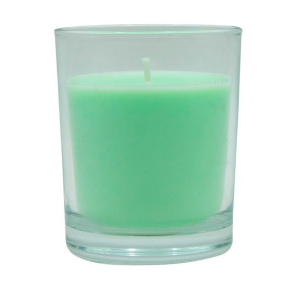 Vela de cera vegetal com fragrância Jasmim noturno. Apresentada em copo de vidro 100% reciclável.