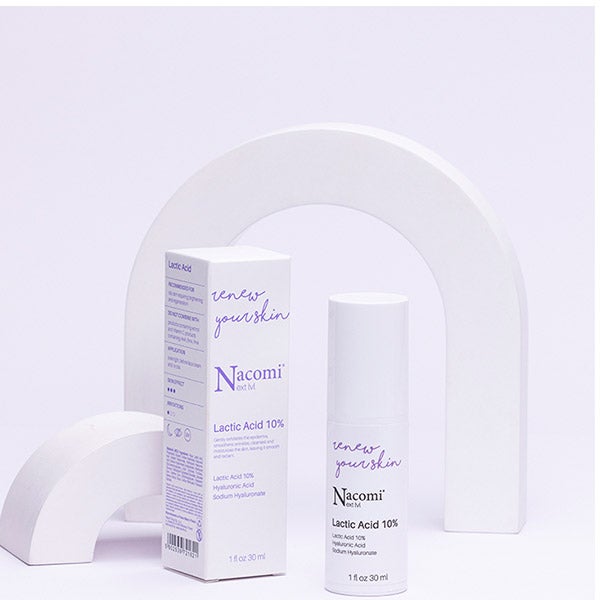 Ácido láctico 10% - De maneira suave, mas eficaz, esfolia e limpa a camada superficial da pele e suaviza as pequenas rugas. O ácido láctico clareia as manchas e uniformiza o tom da pele. O sérum proporciona à pele um nível adequado de hidratação, melhorando sua elasticidade. Deixa a pele macia, lisa e radiante.