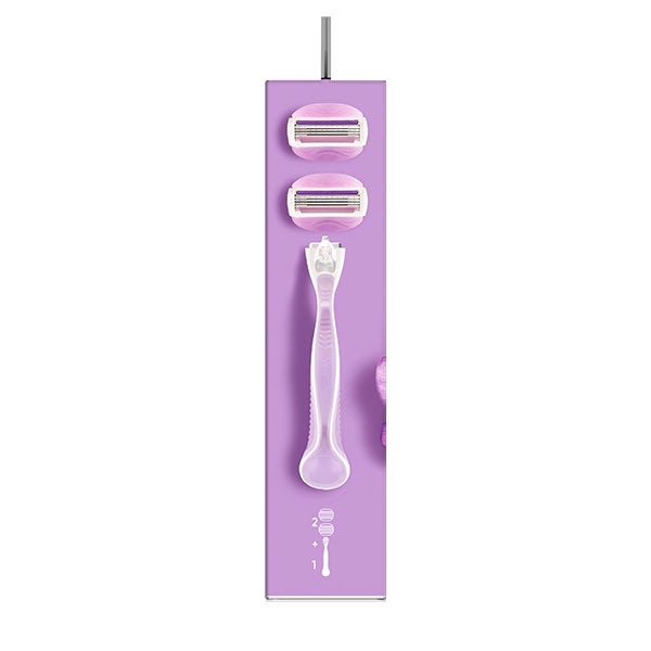 - Barras de gel incorporadas que se flexionam para oferecer uma depilação mais rente.