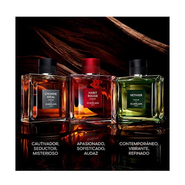 Vétiver Le Parfum, criado com o espírito de um gin, revela uma nota de bagas de zimbro aromáticas e ligeiramente amargas. Uma abertura tônica e energética que destaca as facetas mais frescas de uma essência de vetiver excepcional. Este nobre ingrediente, proveniente da destilação das raízes da planta, revela toda a profundidade dos seus matizes amadeirados. Mistura-se com cativantes notas defumadas e o viciante favo de tonka tão apreciado por Guerlain. Uma trilha luminosa e terrosa ao mesmo tempo, um sublime equilíbrio de potência e elegância.