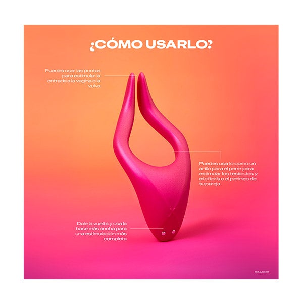Alternativamente, use-o como um anel para o pênis para estimular os testículos e o clitóris ou o períneo do seu parceiro. A base larga pode ficar por cima ou por baixo, mas você pode girá-la como quiser.