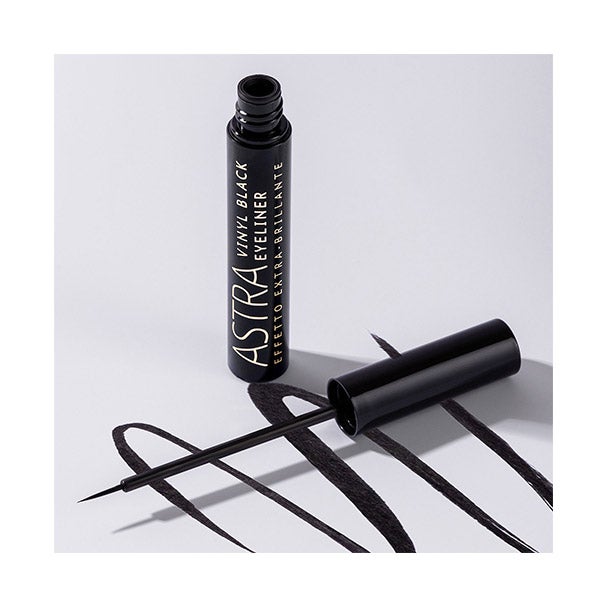 Vinyl Black Eyeliner é o delineador intenso e extrabrilhoso da Astra Make-up. Sua linha é fina e precisa graças ao seu aplicador de cerdas ultrafinas. O acabamento é vinílico graças à tecnologia especial Hyperblack que confere à fórmula um tom preto particularmente intenso.