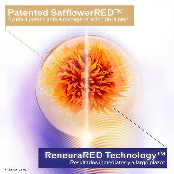 Contém o extrato patenteado SafflowerRED™, cultivado exclusivamente no Japão, que estimula a rede de nutrientes e a autorregeneração da pele*, para combater a perda de firmeza, as rugas profundas e as manchas. Formulado com ReneuraRED Technology™ para uma eficácia mais rápida e prolongada.