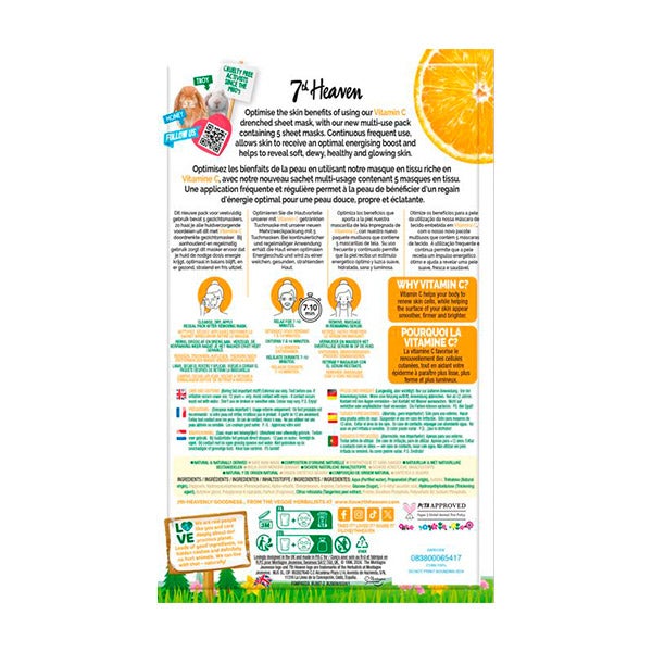 Pacote multiuso que contém 5 máscaras faciais formuladas com Vitamina C para otimizar seus benefícios.