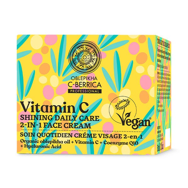 Desfrute da melhor hidratação e efeito glow na sua pele! Nosso inovador creme facial 2 em 1 combina as propriedades nutritivas da oblepikha e os efeitos iluminadores da vitamina C para deixar uma tez jovem e radiante.