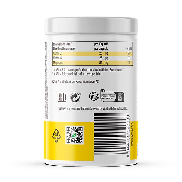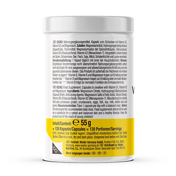 Citrato de magnesio, hidroxipropilmetilcelulosa (cápsula), antiaglomerantes: sales magnésicas de ácidos grasos, dióxido de silicio; vitamina D3 (colecalciferol); vitamina K2 (menaquinona-7).