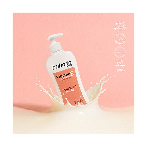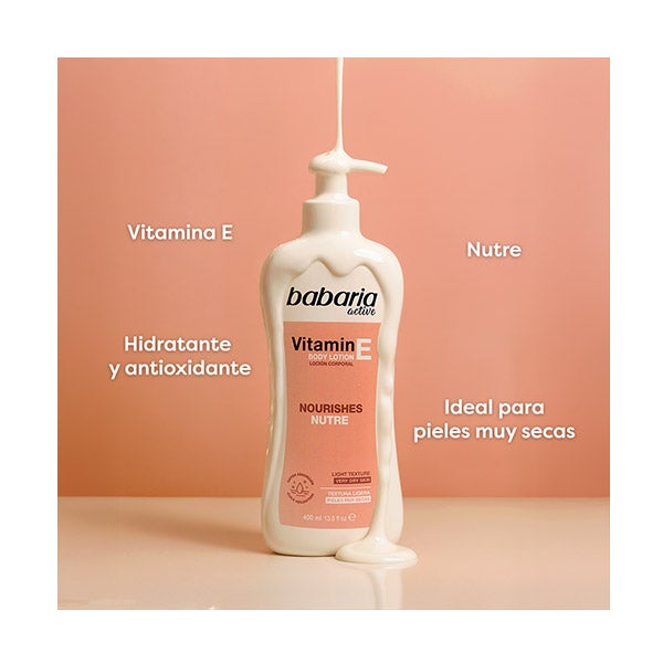 Nutre e protege profundamente a sua pele com a loção corporal de vitamina E da Babaria. Especialmente formulada para pele muito seca, esta loção oferece hidratação intensa e uma potente proteção antioxidante que ajuda a reforçar a barreira natural da pele, proporcionando suavidade e nutrição duradoura.
