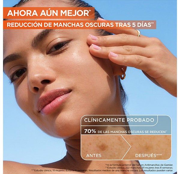 Reduz em 43% a intensidade das manchas escuras inclusive marcas de acne em apenas 8 semanas e proporciona luminosidade.