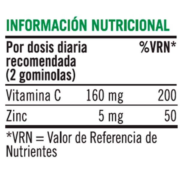 Vitamina C (como ácido ascórbico) 160 mg, zinco (como sulfato de zinco) 5 mg.