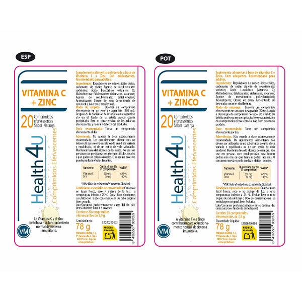 Complemento alimenticio elaborado a base de Vitamina C y Zinc. Con edulcorantes. Recomendado para adultos. Sabor naranja.