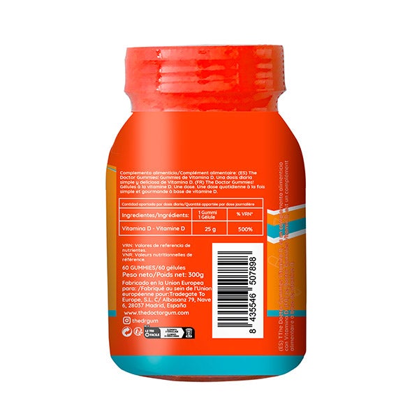 The Doctor Gummies Vitamina D com sabor a pêssego contém vitaminas que ajudam a fortalecer o sistema imunológico, os ossos e dentes.