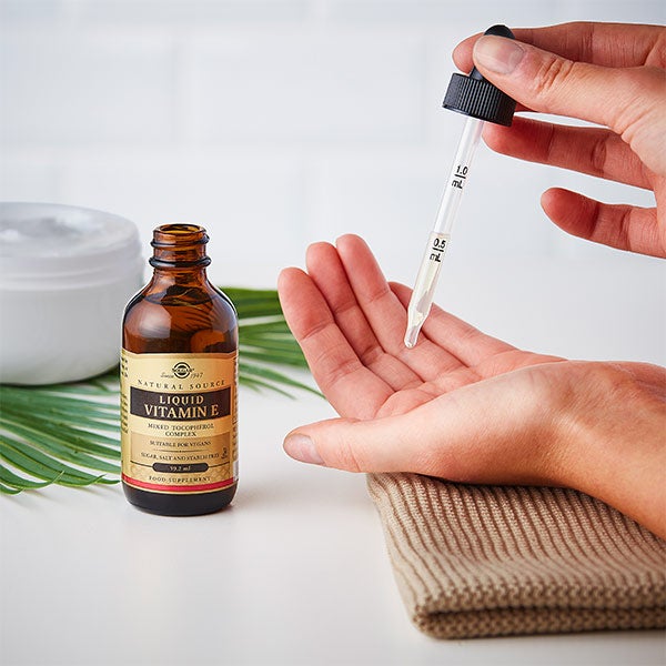 A Vitamina E Líquida oferece gotas de beleza para reforçar as células da pele, oferecendo proteção antioxidante contra o dano dos radicais livres.
