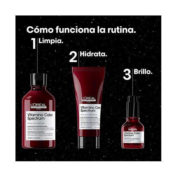 Conjunto profissional para cabelo L'Oréal Professionnel Vitamino Color Spectrum para manter a intensidade da cor.