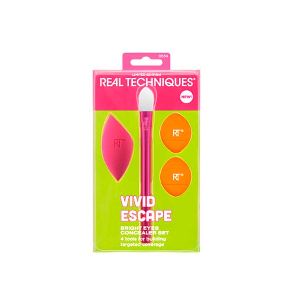 Experimente todos os produtos da nossa coleção Vivid Escape de edição limitada: acessórios ousados e vibrantes projetados para se destacar. O conjunto de corretivos Bright Eyes é fácil de limpar com nosso gel de limpeza profunda Miracle da Real Techniques. Também é 100% livre de crueldade animal, vegano e é projetado com tecnologia revolucionária de espuma sem látex.