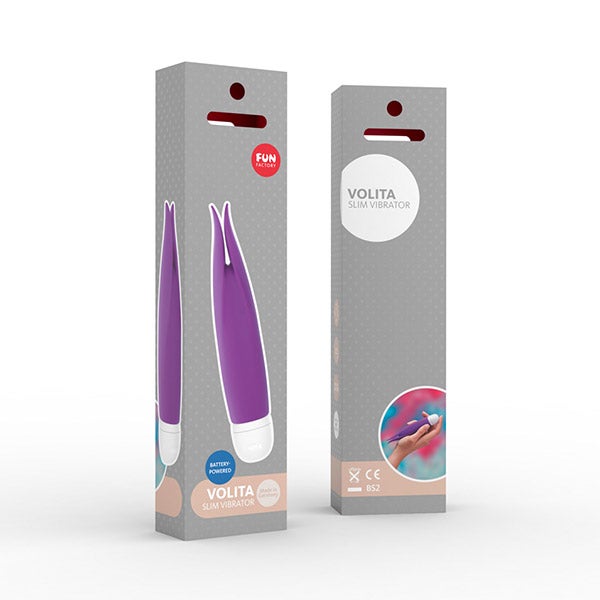 Coloque o Fun Factory Volita violeta com as abas em ambos os lados do clitóris para cercá-lo de sensação, deixe que o Volita mime seu pênis durante uma felação, use-o durante o sexo para uma estimulação adicional!