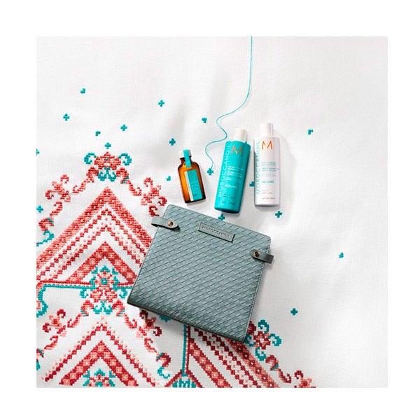 Este nécessaire, elegante, resistente e atemporal, inclui um kit de edição limitada com produtos em tamanho completo para dar volume, além da versão leve do icônico óleo de tratamento. Com a inconfundível fragrância de Moroccanoil e infundido com glicerina para hidratar e extrato de brotos de tília para dar corpo ao cabelo.
