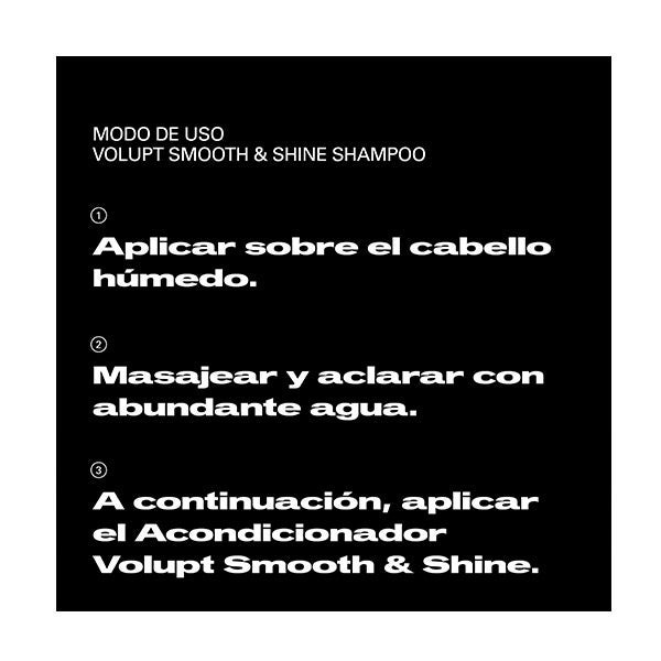 Aplicar sobre o cabelo úmido. Massagear para ativar a espuma. Enxaguar e em seguida, aplicar o condicionador Volupt.